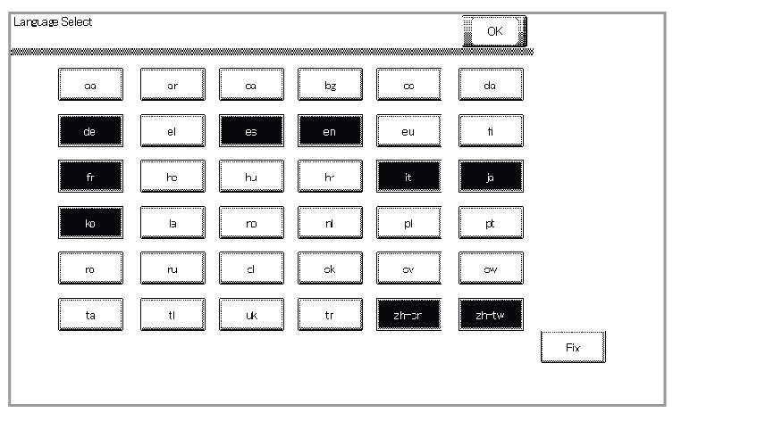 - На экране выбора языка выберите языки, которые будет отображаться на ЖК-дисплее панели управления, затем нажмите [Fix].