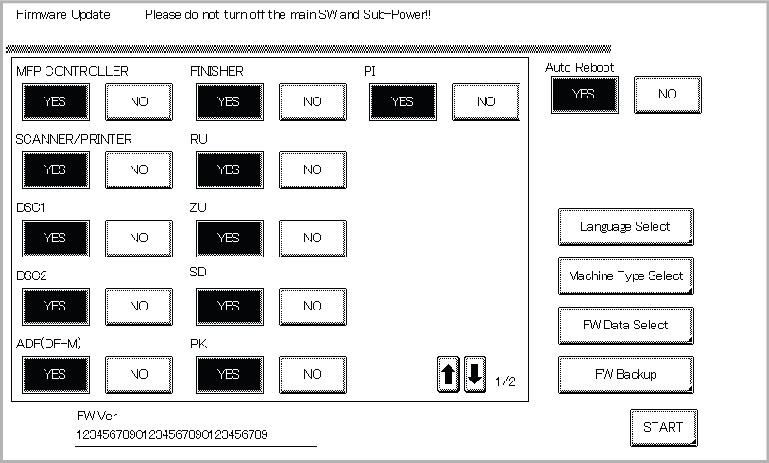 - Когда появится экран обновления прошивки, нажмите [Machine Type Select].